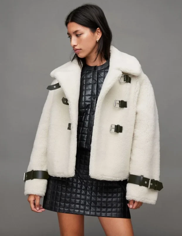 Women’s White Shearling Aviator Jacket